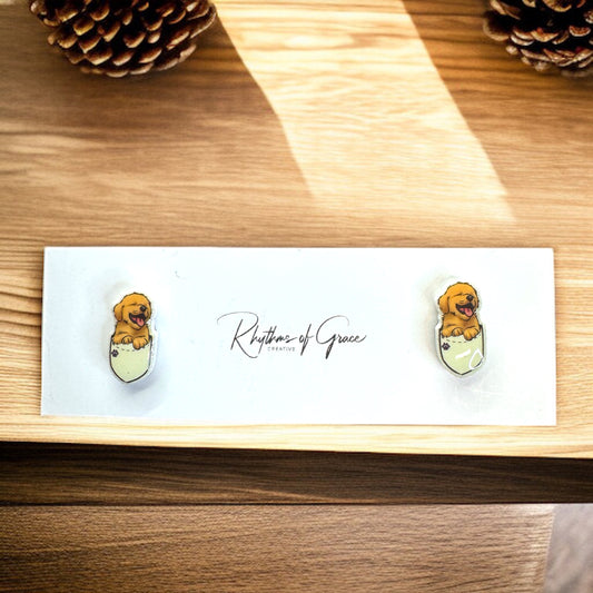 Adorable Golden Retriever Puppy Stud Earrings