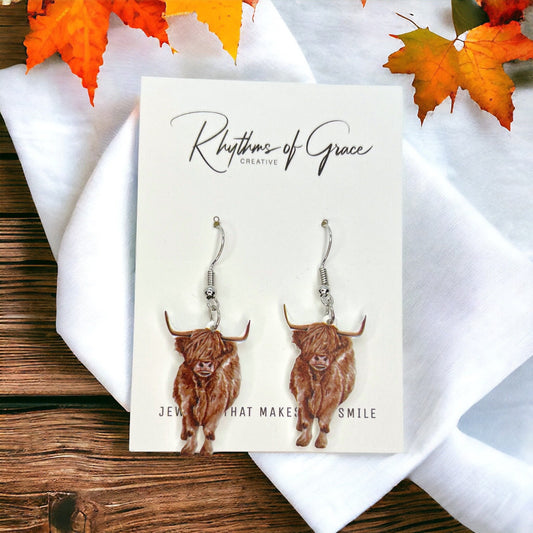Adorable Highland Cow Earrings - Handcrafted Whimsy for Animal Lovers!