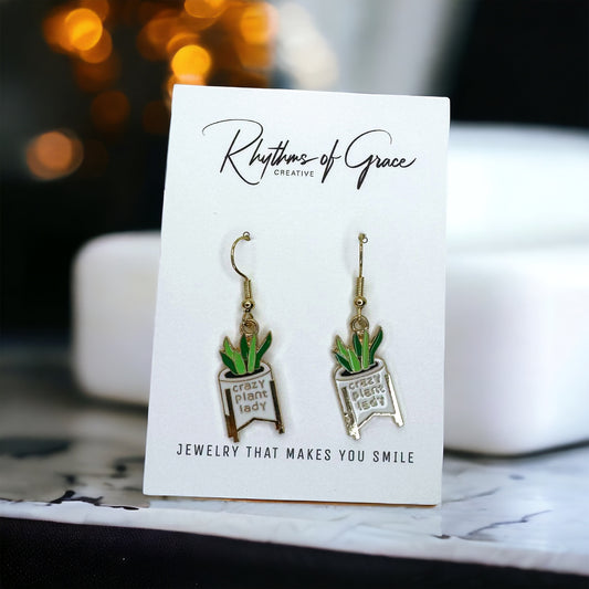 Crazy Plant Lady Dangle Earrings: Your Whimsical Green Accessory! 🌿