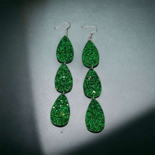 Dazzling Green Glitter Dangle Earrings - Your Lucky Charm! 🍀