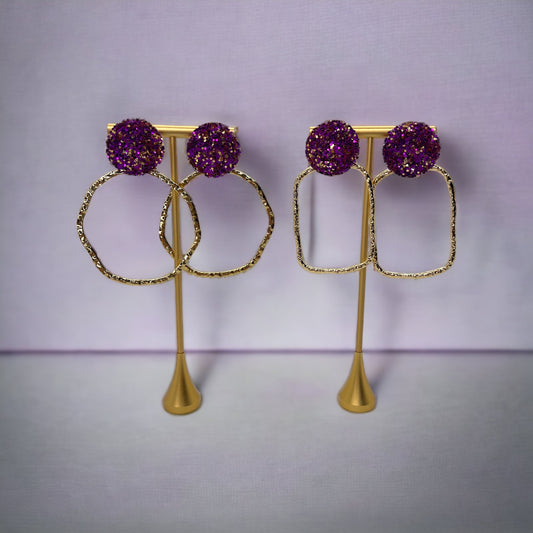 Dazzling Purple and Gold Earrings - Shine Bright! 🌟