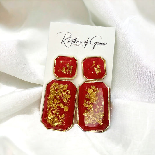 Dazzling Red & Gold Dangle Earrings - Your Perfect Valentine’s Day Statement!