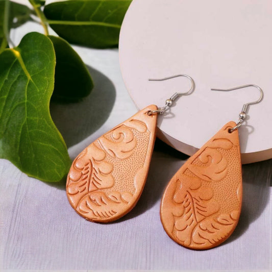 Embossed Leather Teardrop Earrings – Boho Beauty Meets Western Charm 🤎