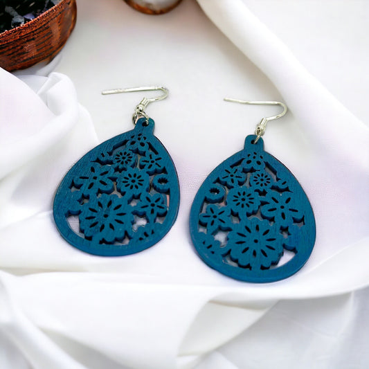 Embrace Your Inner Boho Goddess with Our Blue Wooden Teardrop Earrings!