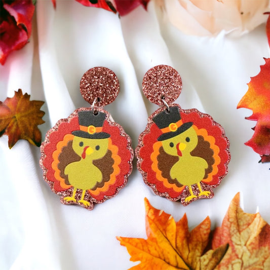 Feast Mode: ON – Glittery Turkey Earrings for Thanksgiving Fun