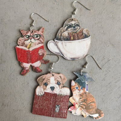 Regular price $15.00 USDRegular priceUnit price / perSale price $15.00 USDBack to School Animal Teacher Earrings – Cat, Dog, Sloth & Grad Designs | Fun Teacher Accessories