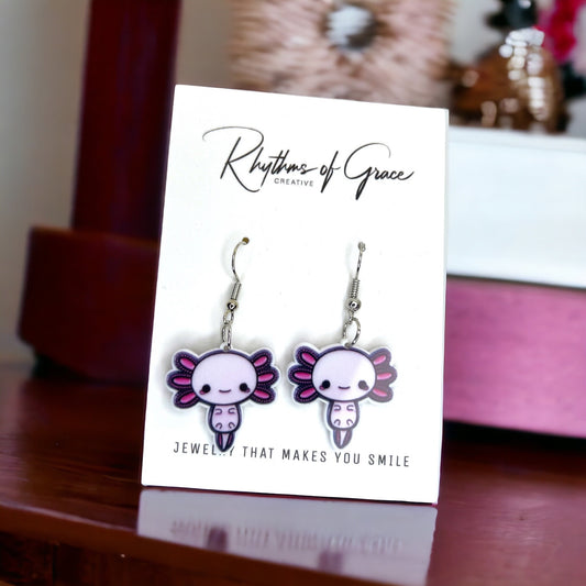 Axolotl of Love: Pink Dangle Earrings That Make a Splash!
