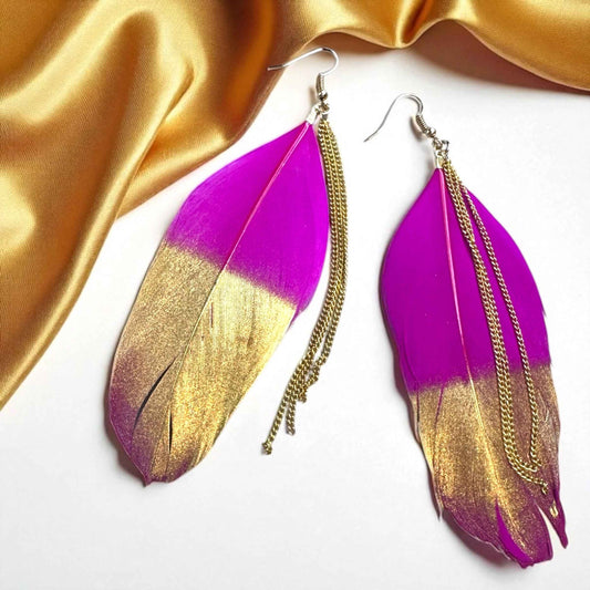 Gold Dipped Feather Earrings: Dance Into the Festivity!