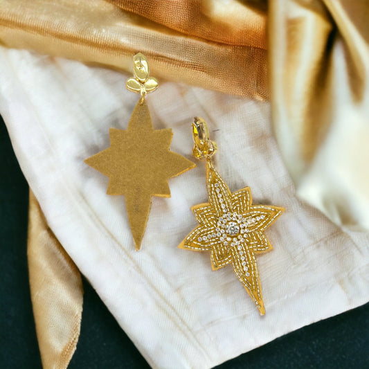 Gold Sparkle Earrings - Gold Beaded, Gold Earrings, Handmade Earrings, Beaded Earrings, Gold Accessories