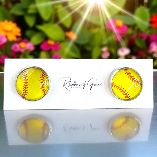 Hit a Style Home Run with Softball Cabochon Stud Earrings! 🥎