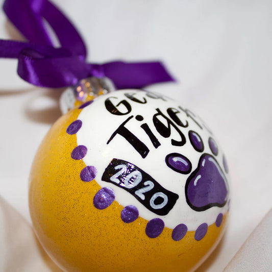 Holiday Christmas Ornament - "Geaux Tigers" - Hand-painted Personalized - LSU Tigers Louisiana Football