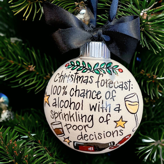 Holiday Humor Ornament – 100% Chance of Alcohol & Poor Decisions