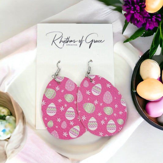 Hop Into Style: Adorable Pink Easter Egg Dangle Earrings!