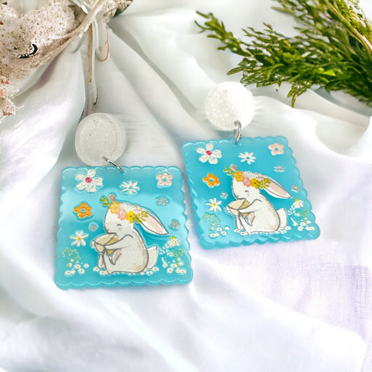 Hop Into Style with Our Charming Pale Blue Bunny Earrings!