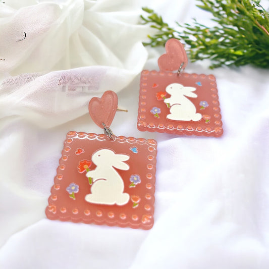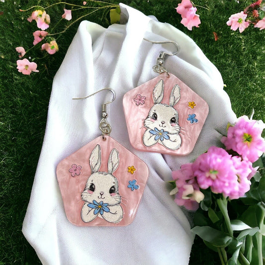 Hop into Style: Adorable Pale Pink Bunny Earrings for Easter Cheer!