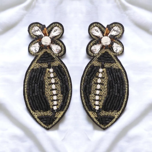 Beaded Football Earrings – Black & Gold NOLA Game Day Jewelry 🏈