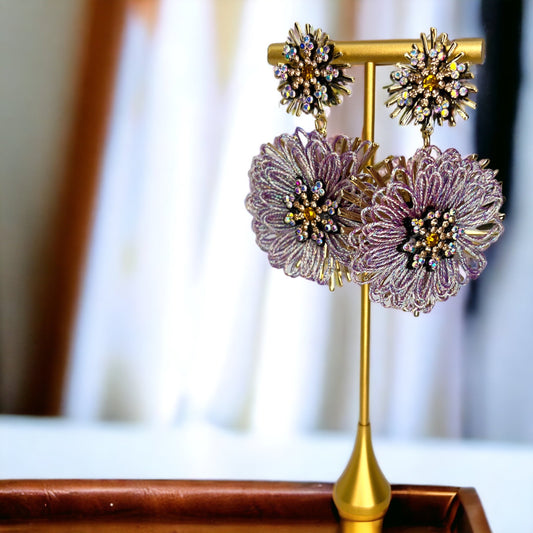 Beaded Flower Earrings - Boho Chic, Lavender Earrings, Floral Accessories, Fun and Funky