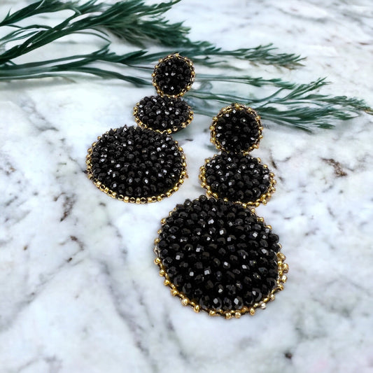 Beaded Drop Earrings - NOLA Saints, Beaded Earrings, Beaded Jewelry, Silver Earrings, Black Earrings, Beaded Accessories, Black and Gold