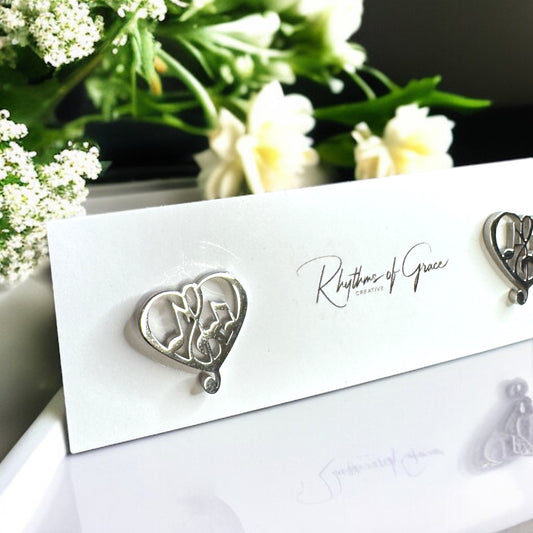 I Heartbeat Harmony: Music Note Heart Stud Earrings ♫