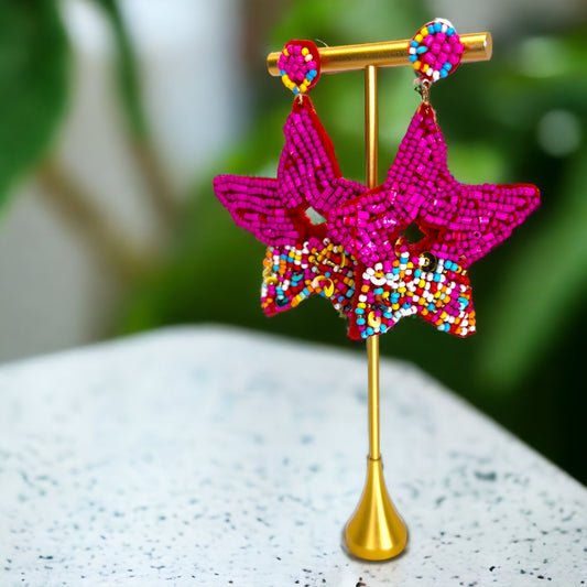Hot Pink Beaded Star Earrings – Summer Vibes & Sparkly Style!