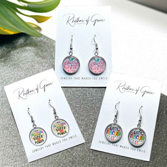 Regular price $10.00 USDRegular priceUnit price / per$15.00 USDSale price $10.00 USDInspire & Shine with Teacher Cabochon Dangle Earrings!