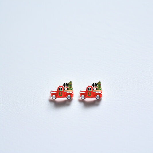 Jolly Pickup Truck Earrings: Holiday Cheer with a St. Bernard Twist!