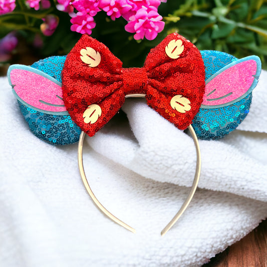 Lilo and Stitch Inspired Sequin Disney Mouse Ears with Glitter Bow - NEW