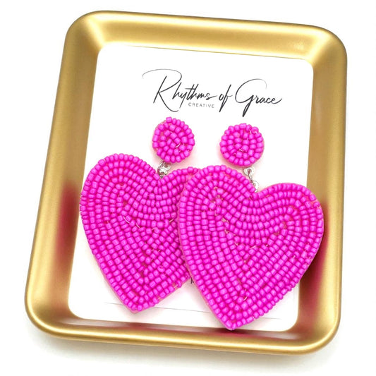Love at First Dangle: Oversized Hot Pink Heart Beaded Earrings!