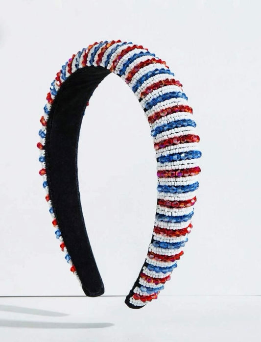 Beaded Patriotic Headband - Handmade Headpiece, Red White and Blue, Stars and Stripes, Military Mom
