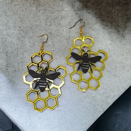Bee-utiful Dangle Earrings - Buzzing Bumblebee Charm & Honeycomb Delight! 🐝