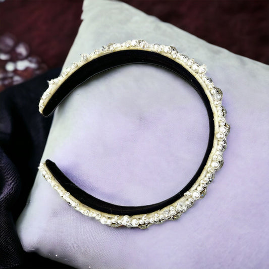 Beaded White Headband - Bridal Shower, Bridal Headpiece, Beaded Headband, Pearls and Rhinestones, Pearl Headband, Rhinestone Headband, Ivory