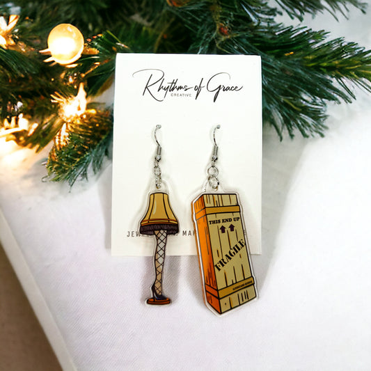 Mismatched Leg Lamp Earrings - A "Fragile" Touch of Holiday Whimsy! ✨