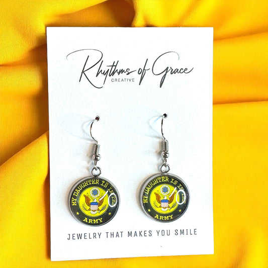 Military Mom Marvels: Army Cabochon Dangle Earrings!