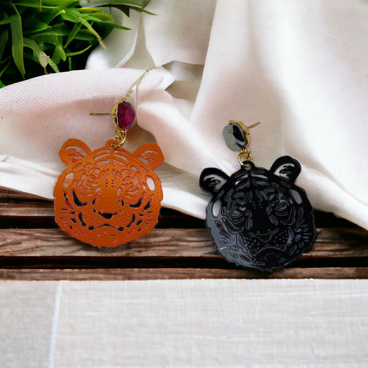 Mismatched Bengal Tiger Dangle Earrings 🧡🖤 – Roar in Style!