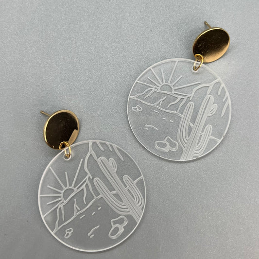 One-of-a-kind Desert Themed Acrylic Etched Earrings - Handmade, Brand New!