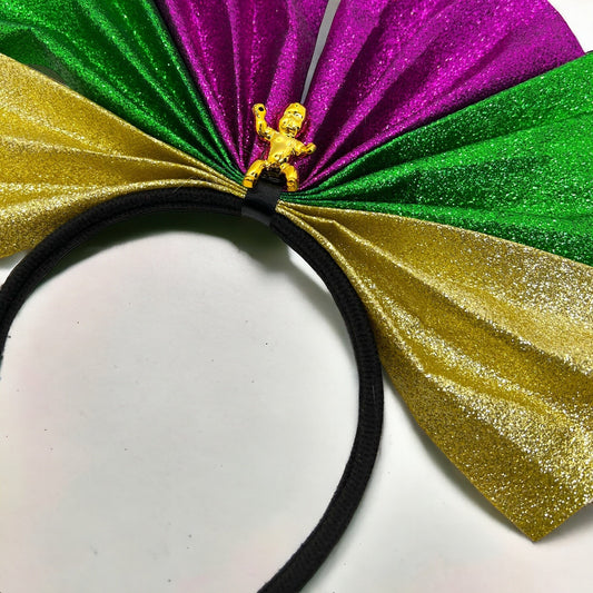 One-of-a-Kind Mardi Gras Magic: Dazzling Headband with King Cake Charm!