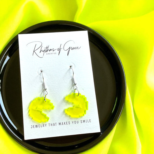 PAC-MAN Party Earrings Set - Embrace 80's Retro with Handmade Dangle Fun!