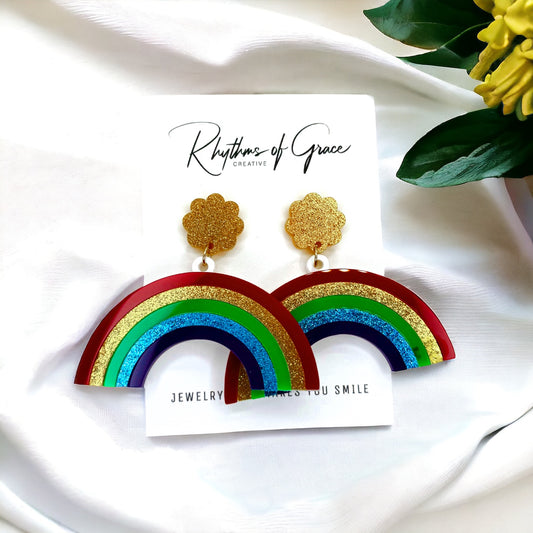 Oversized Rainbow Dangle Earrings - Your Key to Everyday Joy!
