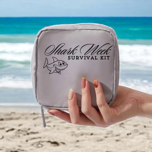 Shark Week Survival Kit Personalized Grey Zipper Case, Brand New, Cosmetic Case
