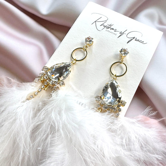 Dreamy White Feather Earrings – Rhinestone Dangles for Boho Queens