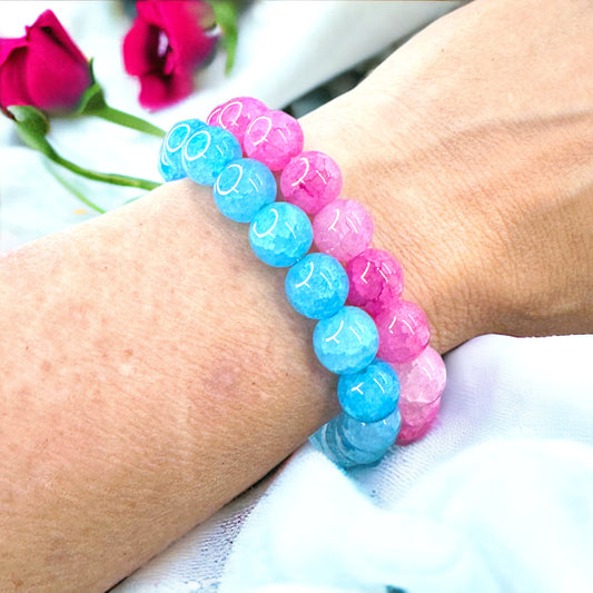 Gender Reveal Accessories Set of 2 Stretchy Bracelets - 1 Pink & 1 Blue