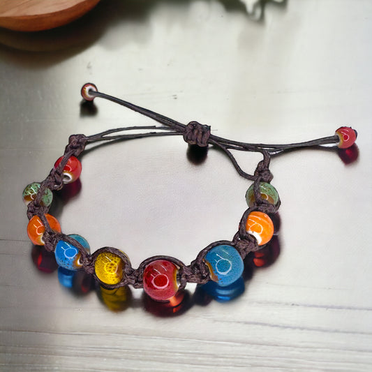 Vibrant Vibes: Adjustable Boho Chic Glass Beaded Bracelet!