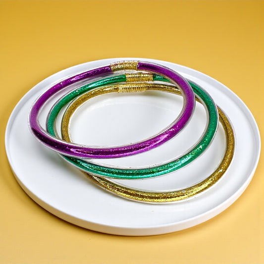 Sparkle & Shine: Handcrafted Mardi Gras Bangle Bracelets!✨