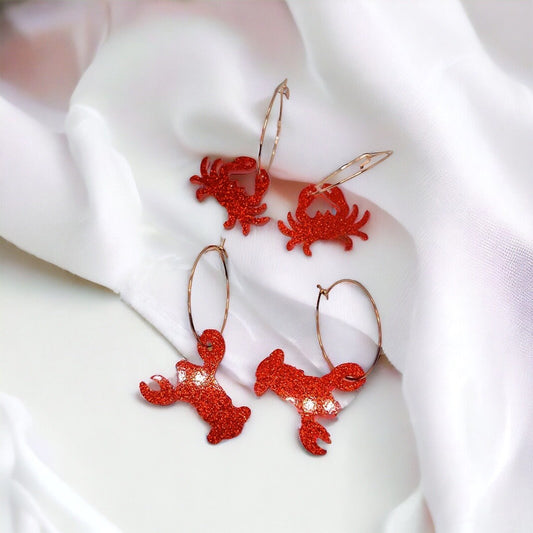 Cajun Charm: Delightful Crawfish & Crab Hoop Earrings for a Splash of Fun!