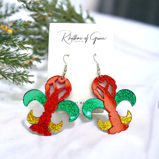Dive into the Cajun Spirit with Fleur de Lis Crawfish Earrings!