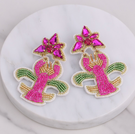 Festive Flair: Beaded Mardi Gras Earrings in Vibrant Purple, Green & Gold!