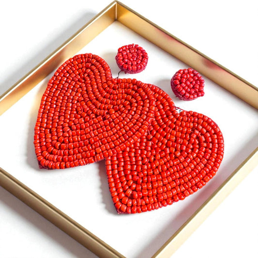 Heartfelt Dangles: Choose Your Vibe with Red or Black Beaded Heart Earrings!