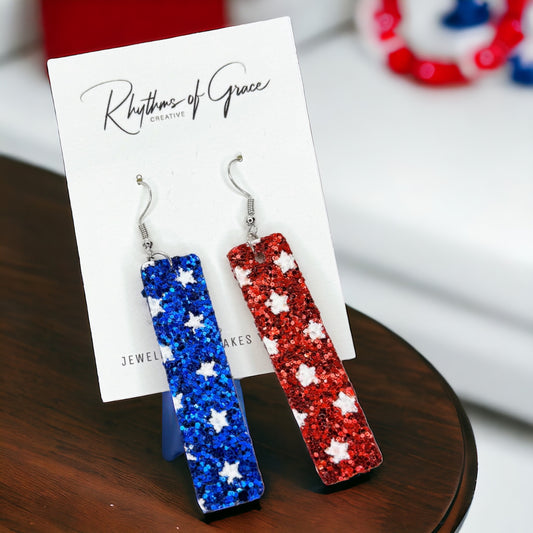 Patriotic Glitter Dangle Earrings - Sparkly and Simple