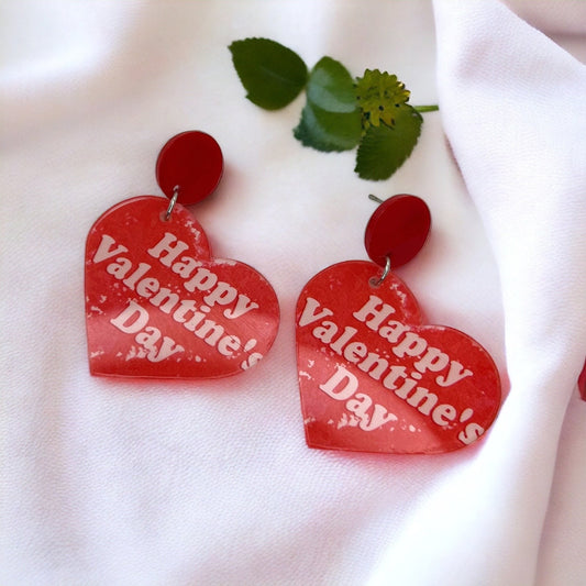 Heartfelt Hues: Happy Valentine's Day Red Heart Earrings!
