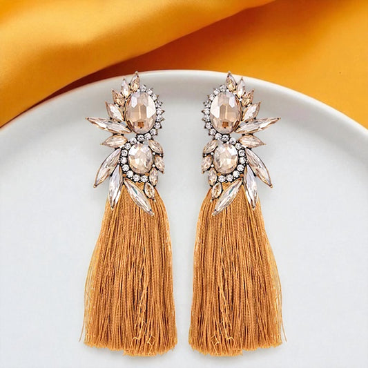 Sparkle & Shine: Dazzling Rhinestone Tassel Earrings in White & Gold!